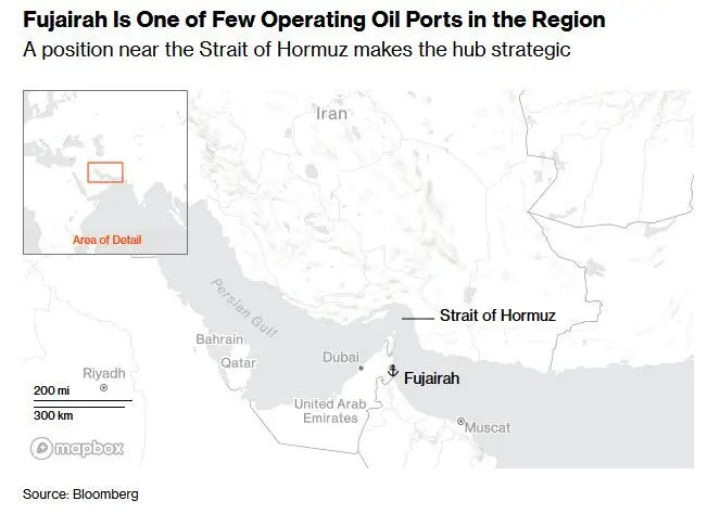 Не только Саудовская Аравия расширяет свои возможности для обхода пролива: Объединенные Арабские Эмираты также максимизировали экспорт нефти из жизненно важного порта, расположенного за пределами Ормузского пролива после того, как некоторые из крупнейших объектов инфраструктуры погрузки нефти возобновили работу после ударов иранских беспилотников ранее Порт на восточном побережье ОАЭ играет решающую роль в качестве выхода для нефти в обход полностью закрытого водного пути Ормуз, что делает его одним из энергетических объектов, на которые чаще всего нацелен Тегеран. После порта Красного моря в Саудовской Аравии Янбу, это крупнейшая точка выхода нефти из Персидского залива в обход морского узкого места.