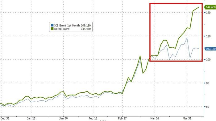Датированная нефть марки Brent – наиболее важный индикатор спроса/предложения на реальные «физические» баррели нефти – достигла нового рекордного максимума за