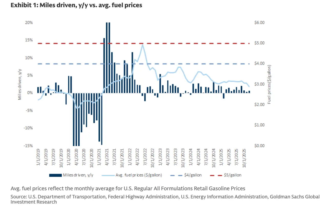 В начале прошлой недели Бонни Херцог, управляющий директор и старший потребительский аналитик Goldman Sachs, написала в заметке, что, когда цены на топливо достигают этих «психологических пороговых» уровней, превышающих 3 доллара и приближающихся к 4 долларам за галлон, потребители склонны меньше ездить и реже заправлять свои баки.